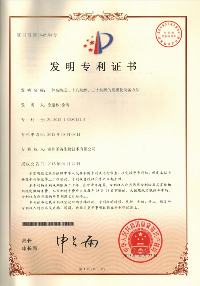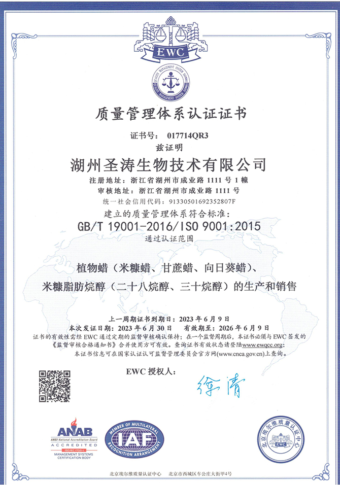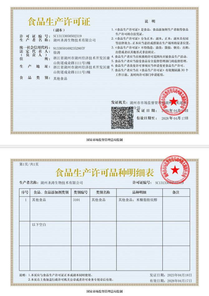 食品生產(chǎn)許可證(米糠脂肪烷醇)